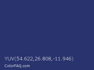 YUV 54.622,26.808,-11.946 Color is a dark blue color and the nearest color is Deep Koamaru #333366. Hex code #29336d and RGB value is rgb(41,51,109). In RGB color space, this color is composed of 16% red, 20% green, 43% blue, In CMYK color space, this color is composed of 62% cyan, 53% magenta, 0% yellow , 57% black , In HSL color space, this color has a hue angle of 231° , 45% saturation and 29% lightness.