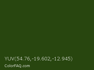 YUV 54.76,-19.602,-12.945 Color is a very dark green color and the nearest color is Green House #24500f. Hex code #28460f and RGB value is rgb(40,70,15). In RGB color space, this color is composed of 16% red, 27% green, 6% blue, In CMYK color space, this color is composed of 43% cyan, 0% magenta, 79% yellow , 73% black , In HSL color space, this color has a hue angle of 93° , 65% saturation and 17% lightness.