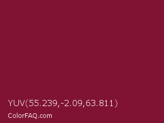 YUV 55.239,-2.09,63.811 Color is a dark rose color and the nearest color is Claret #7f1734. Hex code #801333 and RGB value is rgb(128,19,51). In RGB color space, this color is composed of 50% red, 7% green, 20% blue, In CMYK color space, this color is composed of 0% cyan, 85% magenta, 60% yellow , 50% black , In HSL color space, this color has a hue angle of 342° , 74% saturation and 29% lightness.