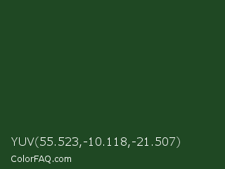 YUV 55.523,-10.118,-21.507 Color is a very dark green color and the nearest color is Cal Poly Pomona Green #1e4d2b. Hex code #1f4823 and RGB value is rgb(31,72,35). In RGB color space, this color is composed of 12% red, 28% green, 14% blue, In CMYK color space, this color is composed of 57% cyan, 0% magenta, 51% yellow , 72% black , In HSL color space, this color has a hue angle of 126° , 40% saturation and 20% lightness.