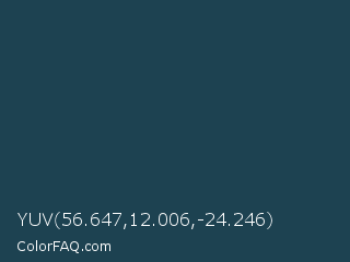 YUV 56.647,12.006,-24.246 Color is a very dark blue color and the nearest color is Blue Dianne #204852. Hex code #1d4251 and RGB value is rgb(29,66,81). In RGB color space, this color is composed of 11% red, 26% green, 32% blue, In CMYK color space, this color is composed of 64% cyan, 19% magenta, 0% yellow , 68% black , In HSL color space, this color has a hue angle of 197° , 47% saturation and 22% lightness.