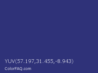 YUV 57.197,31.455,-8.943 Color is a normal blue color and the nearest color is Astronaut #283a77. Hex code #2f3279 and RGB value is rgb(47,50,121). In RGB color space, this color is composed of 18% red, 20% green, 47% blue, In CMYK color space, this color is composed of 61% cyan, 59% magenta, 0% yellow , 53% black , In HSL color space, this color has a hue angle of 238° , 44% saturation and 33% lightness.