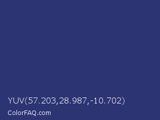 YUV 57.203,28.987,-10.702 Color is a normal blue color and the nearest color is Astronaut #283a77. Hex code #2d3474 and RGB value is rgb(45,52,116). In RGB color space, this color is composed of 18% red, 20% green, 45% blue, In CMYK color space, this color is composed of 61% cyan, 55% magenta, 0% yellow , 55% black , In HSL color space, this color has a hue angle of 234° , 44% saturation and 32% lightness.