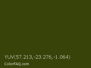 YUV 57.213,-23.276,-1.064 Color is a very dark lime color and the nearest color is Waiouru #363c0d. Hex code #38430a and RGB value is rgb(56,67,10). In RGB color space, this color is composed of 22% red, 26% green, 4% blue, In CMYK color space, this color is composed of 16% cyan, 0% magenta, 85% yellow , 74% black , In HSL color space, this color has a hue angle of 72° , 74% saturation and 15% lightness.