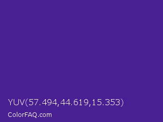 YUV 57.494,44.619,15.353 Color is a normal violet color and the nearest color is Daisy Bush #4f2398. Hex code #4b1f94 and RGB value is rgb(75,31,148). In RGB color space, this color is composed of 29% red, 12% green, 58% blue, In CMYK color space, this color is composed of 49% cyan, 79% magenta, 0% yellow , 42% black , In HSL color space, this color has a hue angle of 263° , 65% saturation and 35% lightness.
