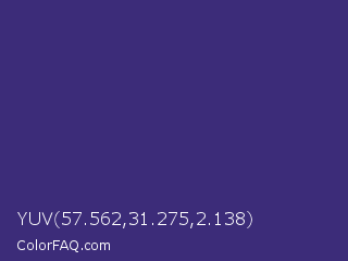 YUV 57.562,31.275,2.138 Color is a normal indigo color and the nearest color is Minsk #3f307f. Hex code #3c2c79 and RGB value is rgb(60,44,121). In RGB color space, this color is composed of 24% red, 17% green, 47% blue, In CMYK color space, this color is composed of 50% cyan, 64% magenta, 0% yellow , 53% black , In HSL color space, this color has a hue angle of 252° , 47% saturation and 32% lightness.