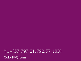 YUV 57.797,21.792,57.183 Color is a dark magenta color and the nearest color is French Plum #811453. Hex code #7b1066 and RGB value is rgb(123,16,102). In RGB color space, this color is composed of 48% red, 6% green, 40% blue, In CMYK color space, this color is composed of 0% cyan, 87% magenta, 17% yellow , 52% black , In HSL color space, this color has a hue angle of 312° , 77% saturation and 27% lightness.