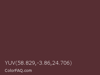 YUV 58.829,-3.86,24.706 Color is a dark red color and the nearest color is Congo Brown #593737. Hex code #572e33 and RGB value is rgb(87,46,51). In RGB color space, this color is composed of 34% red, 18% green, 20% blue, In CMYK color space, this color is composed of 0% cyan, 47% magenta, 41% yellow , 66% black , In HSL color space, this color has a hue angle of 353° , 31% saturation and 26% lightness.