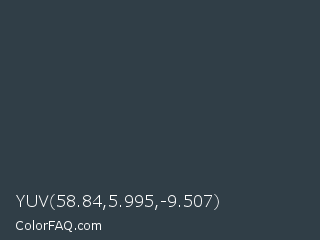 YUV 58.84,5.995,-9.507 Color is a dark blue color and the nearest color is Japanese Indigo #264348. Hex code #303e47 and RGB value is rgb(48,62,71). In RGB color space, this color is composed of 19% red, 24% green, 28% blue, In CMYK color space, this color is composed of 32% cyan, 13% magenta, 0% yellow , 72% black , In HSL color space, this color has a hue angle of 203° , 19% saturation and 23% lightness.