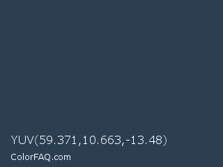 YUV 59.371,10.663,-13.48 Color is a dark blue color and the nearest color is Pickled Bluewood #314459. Hex code #2c3f51 and RGB value is rgb(44,63,81). In RGB color space, this color is composed of 17% red, 25% green, 32% blue, In CMYK color space, this color is composed of 46% cyan, 22% magenta, 0% yellow , 68% black , In HSL color space, this color has a hue angle of 209° , 30% saturation and 25% lightness.