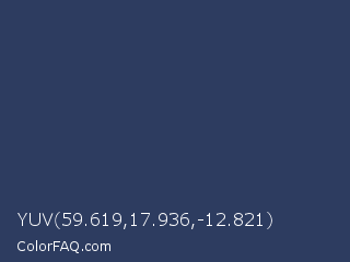 YUV 59.619,17.936,-12.821 Color is a dark blue color and the nearest color is Rhino #2e3f62. Hex code #2d3c60 and RGB value is rgb(45,60,96). In RGB color space, this color is composed of 18% red, 24% green, 38% blue, In CMYK color space, this color is composed of 53% cyan, 38% magenta, 0% yellow , 62% black , In HSL color space, this color has a hue angle of 222° , 36% saturation and 28% lightness.