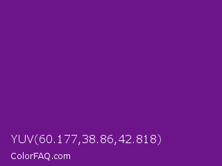 YUV 60.177,38.86,42.818 Color is a normal purple color and the nearest color is Seance #731e8f. Hex code #6d148b and RGB value is rgb(109,20,139). In RGB color space, this color is composed of 43% red, 8% green, 55% blue, In CMYK color space, this color is composed of 22% cyan, 86% magenta, 0% yellow , 45% black , In HSL color space, this color has a hue angle of 285° , 75% saturation and 31% lightness.