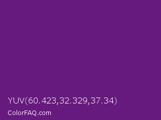 YUV 60.423,32.329,37.34 Color is a dark purple color and the nearest color is Midnight #702670. Hex code #671a7e and RGB value is rgb(103,26,126). In RGB color space, this color is composed of 40% red, 10% green, 49% blue, In CMYK color space, this color is composed of 18% cyan, 79% magenta, 0% yellow , 51% black , In HSL color space, this color has a hue angle of 286° , 66% saturation and 30% lightness.