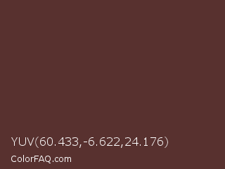 YUV 60.433,-6.622,24.176 Color is a dark red color and the nearest color is Congo Brown #593737. Hex code #58312f and RGB value is rgb(88,49,47). In RGB color space, this color is composed of 35% red, 19% green, 18% blue, In CMYK color space, this color is composed of 0% cyan, 44% magenta, 47% yellow , 65% black , In HSL color space, this color has a hue angle of 3° , 30% saturation and 26% lightness.