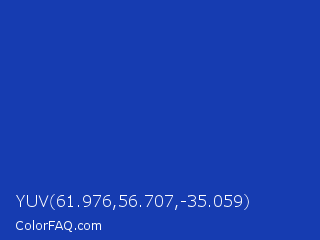 YUV 61.976,56.707,-35.059 Color is a normal blue color and the nearest color is Persian Blue #1c39bb. Hex code #163cb1 and RGB value is rgb(22,60,177). In RGB color space, this color is composed of 9% red, 24% green, 69% blue, In CMYK color space, this color is composed of 88% cyan, 66% magenta, 0% yellow , 31% black , In HSL color space, this color has a hue angle of 225° , 78% saturation and 39% lightness.