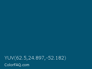 YUV 62.5,24.897,-52.182 Color is a dark blue color and the nearest color is Deep Imperial Blue #00416a. Hex code #035371 and RGB value is rgb(3,83,113). In RGB color space, this color is composed of 1% red, 33% green, 44% blue, In CMYK color space, this color is composed of 97% cyan, 27% magenta, 0% yellow , 56% black , In HSL color space, this color has a hue angle of 196° , 95% saturation and 23% lightness.