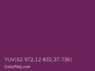 YUV 62.972,12.832,37.736 Color is a dark magenta color and the nearest color is Palatinate Purple #682860. Hex code #6a2459 and RGB value is rgb(106,36,89). In RGB color space, this color is composed of 42% red, 14% green, 35% blue, In CMYK color space, this color is composed of 0% cyan, 66% magenta, 16% yellow , 58% black , In HSL color space, this color has a hue angle of 315° , 49% saturation and 28% lightness.