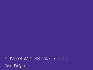 YUV 63.419,38.247,5.772 Color is a normal indigo color and the nearest color is KSU Purple #512888. Hex code #462d8d and RGB value is rgb(70,45,141). In RGB color space, this color is composed of 27% red, 18% green, 55% blue, In CMYK color space, this color is composed of 50% cyan, 68% magenta, 0% yellow , 45% black , In HSL color space, this color has a hue angle of 256° , 52% saturation and 36% lightness.