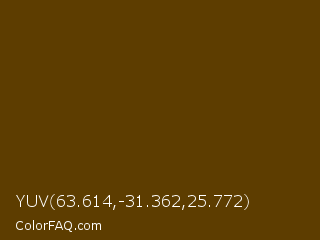 YUV 63.614,-31.362,25.772 Color is a very dark orange color and the nearest color is Saddle Brown #583401. Hex code #5d3d00 and RGB value is rgb(93,61,-0). In RGB color space, this color is composed of 36% red, 24% green, 0% blue, In CMYK color space, this color is composed of 0% cyan, 34% magenta, 100% yellow , 64% black , In HSL color space, this color has a hue angle of 39° , 100% saturation and 18% lightness.