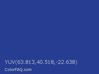 YUV 63.813,40.518,-22.638 Color is a normal blue color and the nearest color is Bay Of Many #273a81. Hex code #263d92 and RGB value is rgb(38,61,146). In RGB color space, this color is composed of 15% red, 24% green, 57% blue, In CMYK color space, this color is composed of 74% cyan, 58% magenta, 0% yellow , 43% black , In HSL color space, this color has a hue angle of 227° , 59% saturation and 36% lightness.