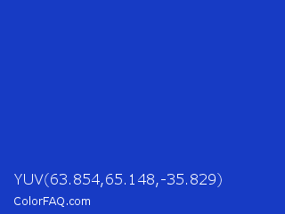 YUV 63.854,65.148,-35.829 Color is a normal blue color and the nearest color is Persian Blue #1c39bb. Hex code #173bc4 and RGB value is rgb(23,59,196). In RGB color space, this color is composed of 9% red, 23% green, 77% blue, In CMYK color space, this color is composed of 88% cyan, 70% magenta, 0% yellow , 23% black , In HSL color space, this color has a hue angle of 228° , 79% saturation and 43% lightness.