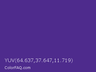 YUV 64.637,37.647,11.719 Color is a normal violet color and the nearest color is KSU Purple #512888. Hex code #4e2b8d and RGB value is rgb(78,43,141). In RGB color space, this color is composed of 31% red, 17% green, 55% blue, In CMYK color space, this color is composed of 45% cyan, 70% magenta, 0% yellow , 45% black , In HSL color space, this color has a hue angle of 261° , 53% saturation and 36% lightness.