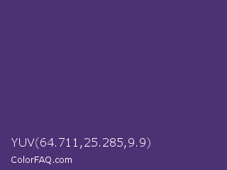 YUV 64.711,25.285,9.9 Color is a normal violet color and the nearest color is Regalia #522d80. Hex code #4c3174 and RGB value is rgb(76,49,116). In RGB color space, this color is composed of 30% red, 19% green, 45% blue, In CMYK color space, this color is composed of 34% cyan, 58% magenta, 0% yellow , 55% black , In HSL color space, this color has a hue angle of 264° , 41% saturation and 32% lightness.