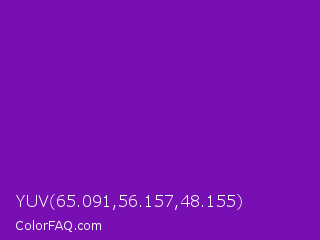 YUV 65.091,56.157,48.155 Color is a normal purple color and the nearest color is Violet RYB #8601af. Hex code #780fb3 and RGB value is rgb(120,15,179). In RGB color space, this color is composed of 47% red, 6% green, 70% blue, In CMYK color space, this color is composed of 33% cyan, 92% magenta, 0% yellow , 30% black , In HSL color space, this color has a hue angle of 278° , 85% saturation and 38% lightness.