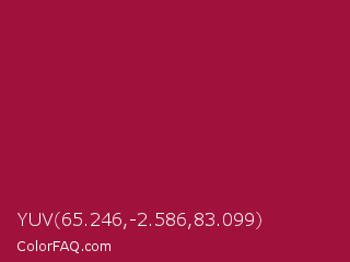YUV 65.246,-2.586,83.099 Color is a normal rose color and the nearest color is Vivid Burgundy #9f1d35. Hex code #a0123c and RGB value is rgb(160,18,60). In RGB color space, this color is composed of 63% red, 7% green, 24% blue, In CMYK color space, this color is composed of 0% cyan, 89% magenta, 63% yellow , 37% black , In HSL color space, this color has a hue angle of 342° , 80% saturation and 35% lightness.