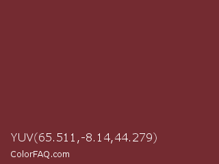 YUV 65.511,-8.14,44.279 Color is a normal red color and the nearest color is Wine #722f37. Hex code #742b31 and RGB value is rgb(116,43,49). In RGB color space, this color is composed of 45% red, 17% green, 19% blue, In CMYK color space, this color is composed of 0% cyan, 63% magenta, 58% yellow , 55% black , In HSL color space, this color has a hue angle of 355° , 46% saturation and 31% lightness.
