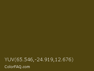YUV 65.546,-24.919,12.676 Color is a very dark yellow color and the nearest color is Bronze Olive #4e420c. Hex code #50440f and RGB value is rgb(80,68,15). In RGB color space, this color is composed of 31% red, 27% green, 6% blue, In CMYK color space, this color is composed of 0% cyan, 15% magenta, 81% yellow , 69% black , In HSL color space, this color has a hue angle of 49° , 68% saturation and 19% lightness.