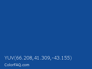 YUV 66.208,41.309,-43.155 Color is a normal blue color and the nearest color is Yale Blue #0f4d92. Hex code #114b96 and RGB value is rgb(17,75,150). In RGB color space, this color is composed of 7% red, 29% green, 59% blue, In CMYK color space, this color is composed of 89% cyan, 50% magenta, 0% yellow , 41% black , In HSL color space, this color has a hue angle of 214° , 80% saturation and 33% lightness.