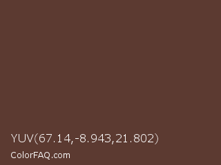 YUV 67.14,-8.943,21.802 Color is a dark red color and the nearest color is Congo Brown #593737. Hex code #5c3a31 and RGB value is rgb(92,58,49). In RGB color space, this color is composed of 36% red, 23% green, 19% blue, In CMYK color space, this color is composed of 0% cyan, 37% magenta, 47% yellow , 64% black , In HSL color space, this color has a hue angle of 13° , 30% saturation and 28% lightness.