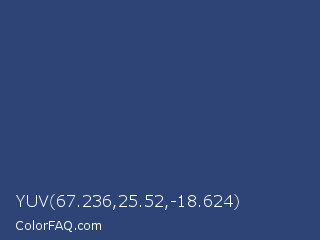 YUV 67.236,25.52,-18.624 Color is a normal blue color and the nearest color is Astronaut #283a77. Hex code #2e4477 and RGB value is rgb(46,68,119). In RGB color space, this color is composed of 18% red, 27% green, 47% blue, In CMYK color space, this color is composed of 61% cyan, 43% magenta, 0% yellow , 53% black , In HSL color space, this color has a hue angle of 222° , 44% saturation and 32% lightness.
