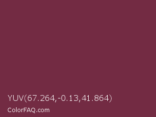YUV 67.264,-0.13,41.864 Color is a normal rose color and the nearest color is Catawba #703642. Hex code #732b43 and RGB value is rgb(115,43,67). In RGB color space, this color is composed of 45% red, 17% green, 26% blue, In CMYK color space, this color is composed of 0% cyan, 63% magenta, 42% yellow , 55% black , In HSL color space, this color has a hue angle of 340° , 46% saturation and 31% lightness.