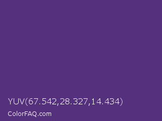 YUV 67.542,28.327,14.434 Color is a normal violet color and the nearest color is Regalia #522d80. Hex code #54307d and RGB value is rgb(84,48,125). In RGB color space, this color is composed of 33% red, 19% green, 49% blue, In CMYK color space, this color is composed of 33% cyan, 62% magenta, 0% yellow , 51% black , In HSL color space, this color has a hue angle of 268° , 45% saturation and 34% lightness.