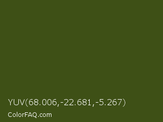YUV 68.006,-22.681,-5.267 Color is a very dark lime color and the nearest color is Clover #384910. Hex code #3e5016 and RGB value is rgb(62,80,22). In RGB color space, this color is composed of 24% red, 31% green, 9% blue, In CMYK color space, this color is composed of 23% cyan, 0% magenta, 73% yellow , 69% black , In HSL color space, this color has a hue angle of 79° , 57% saturation and 20% lightness.