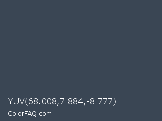 YUV 68.008,7.884,-8.777 Color is a dark blue color and the nearest color is Oxford Blue #384555. Hex code #3a4654 and RGB value is rgb(58,70,84). In RGB color space, this color is composed of 23% red, 27% green, 33% blue, In CMYK color space, this color is composed of 31% cyan, 17% magenta, 0% yellow , 67% black , In HSL color space, this color has a hue angle of 212° , 18% saturation and 28% lightness.