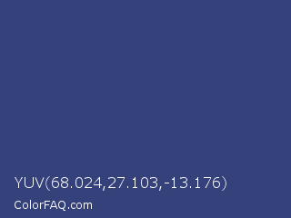 YUV 68.024,27.103,-13.176 Color is a normal blue color and the nearest color is Astronaut #283a77. Hex code #35417b and RGB value is rgb(53,65,123). In RGB color space, this color is composed of 21% red, 25% green, 48% blue, In CMYK color space, this color is composed of 57% cyan, 47% magenta, 0% yellow , 52% black , In HSL color space, this color has a hue angle of 230° , 40% saturation and 35% lightness.