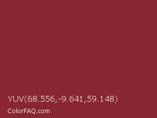 YUV 68.556,-9.641,59.148 Color is a normal red color and the nearest color is Antique Ruby #841b2d. Hex code #882631 and RGB value is rgb(136,38,49). In RGB color space, this color is composed of 53% red, 15% green, 19% blue, In CMYK color space, this color is composed of 0% cyan, 72% magenta, 64% yellow , 47% black , In HSL color space, this color has a hue angle of 353° , 56% saturation and 34% lightness.