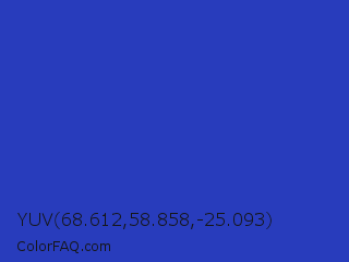 YUV 68.612,58.858,-25.093 Color is a normal blue color and the nearest color is Denim Blue #2243b6. Hex code #283cbc and RGB value is rgb(40,60,188). In RGB color space, this color is composed of 16% red, 24% green, 74% blue, In CMYK color space, this color is composed of 79% cyan, 68% magenta, 0% yellow , 26% black , In HSL color space, this color has a hue angle of 232° , 65% saturation and 45% lightness.