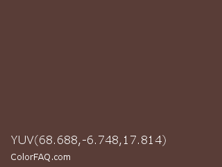 YUV 68.688,-6.748,17.814 Color is a dark red color and the nearest color is Dark Liver Horses #543d37. Hex code #593d37 and RGB value is rgb(89,61,55). In RGB color space, this color is composed of 35% red, 24% green, 22% blue, In CMYK color space, this color is composed of 0% cyan, 31% magenta, 38% yellow , 65% black , In HSL color space, this color has a hue angle of 11° , 24% saturation and 28% lightness.