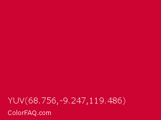 YUV 68.756,-9.247,119.486 Color is a normal red color and the nearest color is Vivid Crimson #cc0033. Hex code #cd0332 and RGB value is rgb(205,3,50). In RGB color space, this color is composed of 80% red, 1% green, 20% blue, In CMYK color space, this color is composed of 0% cyan, 99% magenta, 76% yellow , 20% black , In HSL color space, this color has a hue angle of 346° , 97% saturation and 41% lightness.