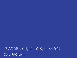 YUV 68.764,41.528,-19.964 Color is a normal blue color and the nearest color is Blue Pigment #333399. Hex code #2e4099 and RGB value is rgb(46,64,153). In RGB color space, this color is composed of 18% red, 25% green, 60% blue, In CMYK color space, this color is composed of 70% cyan, 58% magenta, 0% yellow , 40% black , In HSL color space, this color has a hue angle of 230° , 54% saturation and 39% lightness.