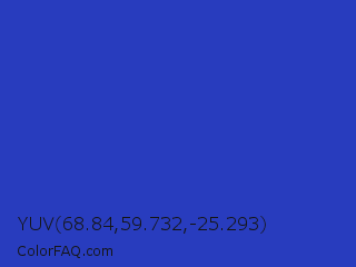 YUV 68.84,59.732,-25.293 Color is a normal blue color and the nearest color is Denim Blue #2243b6. Hex code #283cbe and RGB value is rgb(40,60,190). In RGB color space, this color is composed of 16% red, 24% green, 75% blue, In CMYK color space, this color is composed of 79% cyan, 68% magenta, 0% yellow , 25% black , In HSL color space, this color has a hue angle of 232° , 65% saturation and 45% lightness.