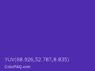 YUV 68.926,52.787,8.835 Color is a normal indigo color and the nearest color is Ocean Blue #4f42b5. Hex code #4f2bb0 and RGB value is rgb(79,43,176). In RGB color space, this color is composed of 31% red, 17% green, 69% blue, In CMYK color space, this color is composed of 55% cyan, 76% magenta, 0% yellow , 31% black , In HSL color space, this color has a hue angle of 256° , 61% saturation and 43% lightness.