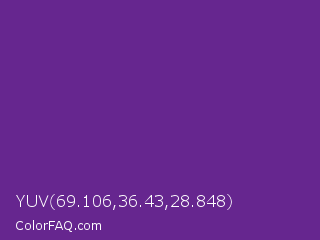 YUV 69.106,36.43,28.848 Color is a normal purple color and the nearest color is Seance #731e8f. Hex code #66268f and RGB value is rgb(102,38,143). In RGB color space, this color is composed of 40% red, 15% green, 56% blue, In CMYK color space, this color is composed of 29% cyan, 73% magenta, 0% yellow , 44% black , In HSL color space, this color has a hue angle of 277° , 58% saturation and 35% lightness.