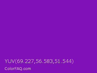 YUV 69.227,56.583,51.544 Color is a normal purple color and the nearest color is Violet RYB #8601af. Hex code #8011b8 and RGB value is rgb(128,17,184). In RGB color space, this color is composed of 50% red, 7% green, 72% blue, In CMYK color space, this color is composed of 30% cyan, 91% magenta, 0% yellow , 28% black , In HSL color space, this color has a hue angle of 280° , 83% saturation and 39% lightness.