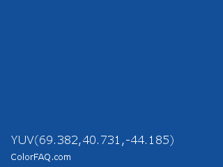 YUV 69.382,40.731,-44.185 Color is a normal blue color and the nearest color is Yale Blue #0f4d92. Hex code #134f98 and RGB value is rgb(19,79,152). In RGB color space, this color is composed of 7% red, 31% green, 60% blue, In CMYK color space, this color is composed of 88% cyan, 48% magenta, 0% yellow , 40% black , In HSL color space, this color has a hue angle of 213° , 78% saturation and 34% lightness.
