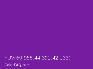 YUV 69.958,44.391,42.133 Color is a normal purple color and the nearest color is Seance #731e8f. Hex code #761ca0 and RGB value is rgb(118,28,160). In RGB color space, this color is composed of 46% red, 11% green, 63% blue, In CMYK color space, this color is composed of 26% cyan, 83% magenta, 0% yellow , 37% black , In HSL color space, this color has a hue angle of 281° , 70% saturation and 37% lightness.